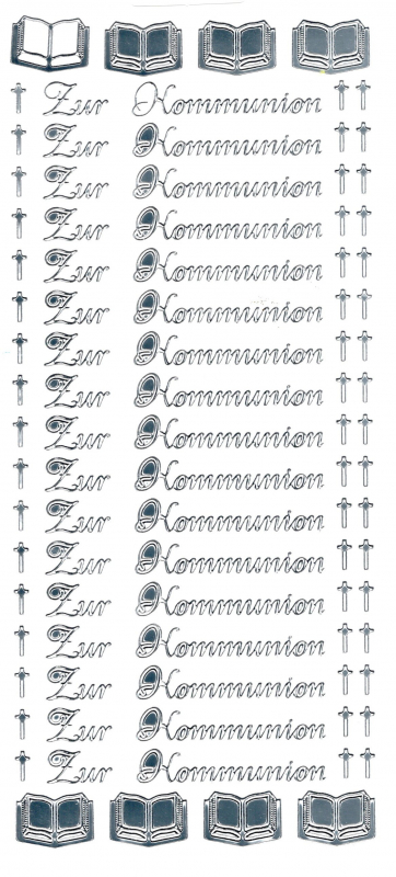 Ziersticker mit 17 Schriftzügen Zur Kommunion, 51 kl. Kreuze, 8 Bibeln